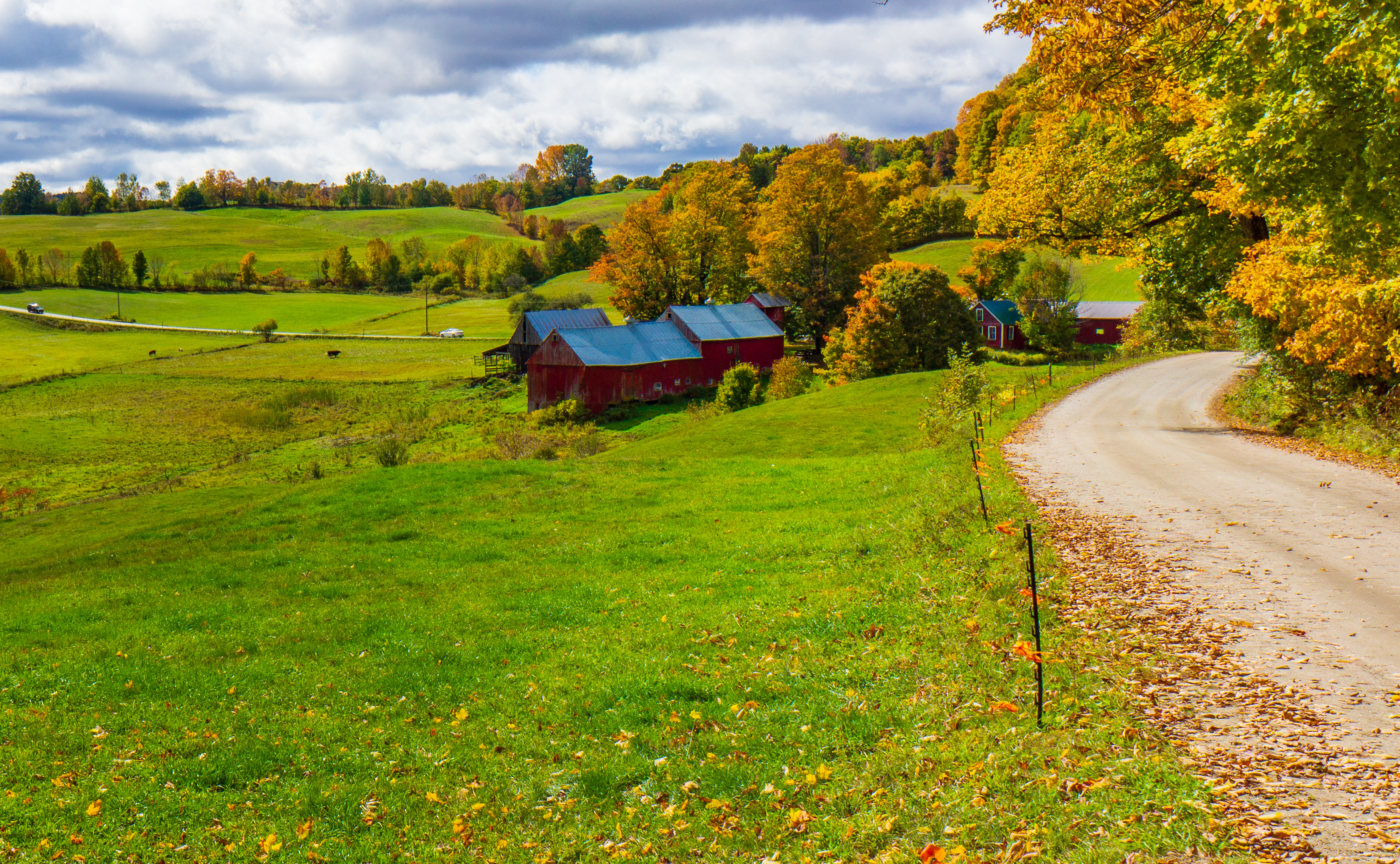 Oh, the beauty of Fall colors — we came in search of the changing colors and we mostly found them! As we crossed through New Hampshire in the White Mountains and then over into Vermont just north of the Green Mountains, we traversed through areas of “not quite there” foliage to the most brilliant of reds of the Red Maples, blazing yellows and all shades in between. We were very fortunate to have several gorgeous days with beautiful blue skies, but we also had several cloudy days as well. Our boat tour on Lake Winnipesaukee was all cloudy, so no photos of merit. Despite it all, we had some wonderful drives through the mountains — its pretty regardless of the weather.